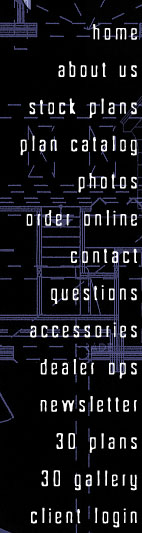 About Us :: Plans :: Catalog :: Log Home Photos :: Order :: Contact Us :: Questions Accessories :: Dealer Ops :: 3D Plans :: 3D Gallery :: Newsletter :: Newsletter Archive :: Areas Served :: Links :: Site Map